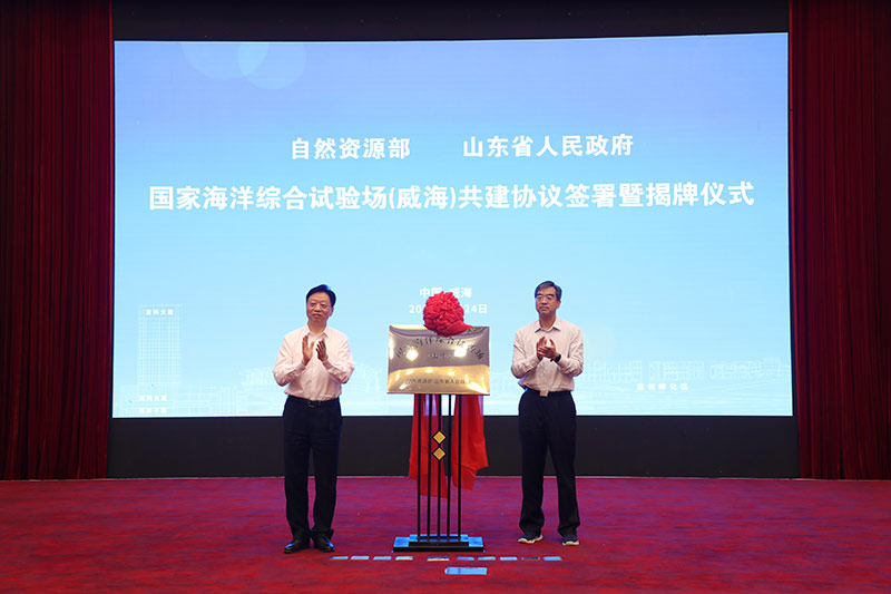 9月24日,自然资源部与山东省人民政府在威海市共同签署了《自然资源部 山东省人民政府共建国家海洋综合试验场(威海)协议》。“国家海洋综合试验场(威海)”正式揭牌。自然资源部副部长、国家海洋局局长王宏,山东省副省长曾赞荣出席签约暨揭牌仪式。